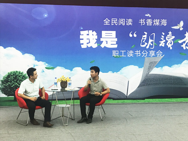 四、着力搭建“魅力阅读、书香矿山”活动交流平台,让全员阅读“香溢矿山”。采取式种形式展示全矿广大干部职工读书的成果,分享学习的所思所悟。坚持召开读书会分享阅读成果。每季举办一次“我是朗读者”职工读书分享会,组织一些读书爱好者与大家交流自己的读书感悟与心得,分享在读书学习中的收获与喜悦。从小故事大智慧的《让那燕子归来》、《当我们老了的时候》到散文诗集《故都的秋》、《文化苦旅》,从儒家经典《论语》、《孟子》到名人传记《苏东坡传》、《曾国藩传》,大家分享了对自己产生积极影响的书籍、名家以及坚持读书学习为自己带来的改变,分享了各自独有的读书感悟。读书分享会的开展,使大家在读书交流中提升了文化素养,在全矿营造出崇尚知识、热爱读书、自觉学习的浓厚文化氛围。坚持专家辅导解读交流阅读成果。充分利用孔孟之乡文化资源来提高全员阅读和文化层次,与孔子文化研究院、济宁市文联、邹城市文联加强沟通交流,邀请其专家教授和研究人员到矿授课辅导,为全矿干部职工讲解“忠孝仁义”优秀传统文化,解读“论语”、“道德经”等经典国学文化。定期组织太阳花文学社、读书沙龙成员与地方读书、朗诵、文联等协会开展联宜活动,研讨阅读书籍,交流阅读心得,全面提高了广大干部职工的阅读层次、能力和水平。坚持网络视频展播阅读成果。组织开展“我是朗读者”网络电视展播活动,定期组织一些干部职工朗诵经典诗词、优秀文章,并拍摄制作成视频,在新新兖矿微信平台、济二互联空间微信平台和矿网站、电视台上进行展播,用声影并茂的方式为分享交流广大干部职工读书的成果。组织读书爱好者与邹城电视台、全民阅读邹城读书会、朗诵艺术协会联合录制读书节目,一起分享阅读成果,扩大了阅读活动的影响力和带动力,更多的职工群众参与到了“魅力阅读、书香矿山”活动中来,在全矿形成了浓厚的阅读氛围,全员阅读的书香在矿山四溢。