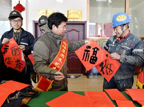 同煤集团文艺志愿者“喜迎新春 福临万家”送春联活动走进挖金湾煤业公司