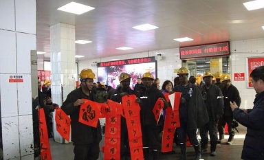 同煤集团燕子山矿开展“新春送祝福、写春联走进井口”活动 来源:同煤集团燕子山矿 作者:吕存 王伟佳 时间:2018-02-06 【字体:小 大】 2月5日,同煤集团燕子山矿开展“新春送祝福、写春联走进井口”活动,为出入井的员工送上新春祝福。早上,矿书法协会的会员们齐聚在井口,挥毫员工书写春联。“竹叶诗吟千古秀,梅花赋报万家春”“迎喜迎春迎富贵,接财接福接平安”,一幅幅满含祝福的大红春联一挥而就,带着满满的祝福和心意送到了员工的手里。据悉,此次活动共送出200余幅春联,在营造节日气氛的同时送上对员工家属的美好祝福。图为该矿书法协会会员们在井口为员工书写春联。 智能标签: 同煤集团 燕子山矿 相关内容 分享到: 【打印正文】