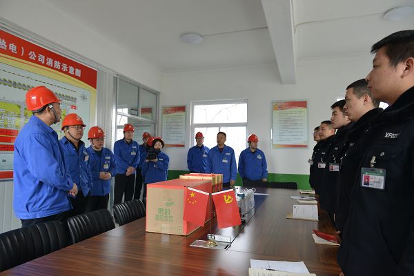 “给大家拜年啦!”“领导好!消防有我!保证完成任务!”消防队里,战斗员正在学习。公司领导详细查看了消防队员的学习生活环境,在消防示意图前,仔细询问了公司消防分布情况,勉励大家发扬革命军人的光荣传统,练好本领,保障企业消防安全,同时嘱咐安环部、工会做好消防队员的生活文化体育训练工作。