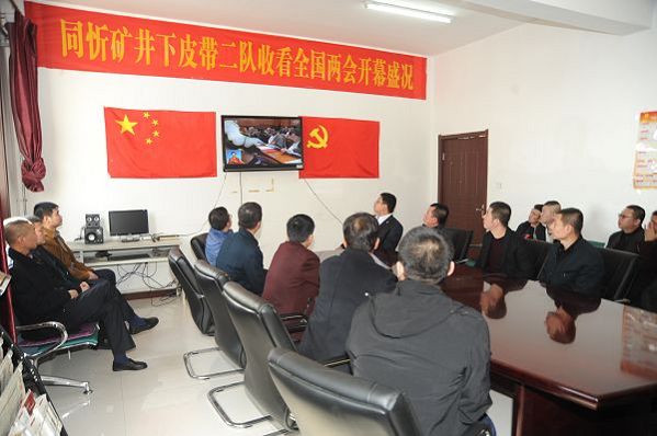 同煤集团同忻矿员工关心国家大事 积极收听收看两会盛况
