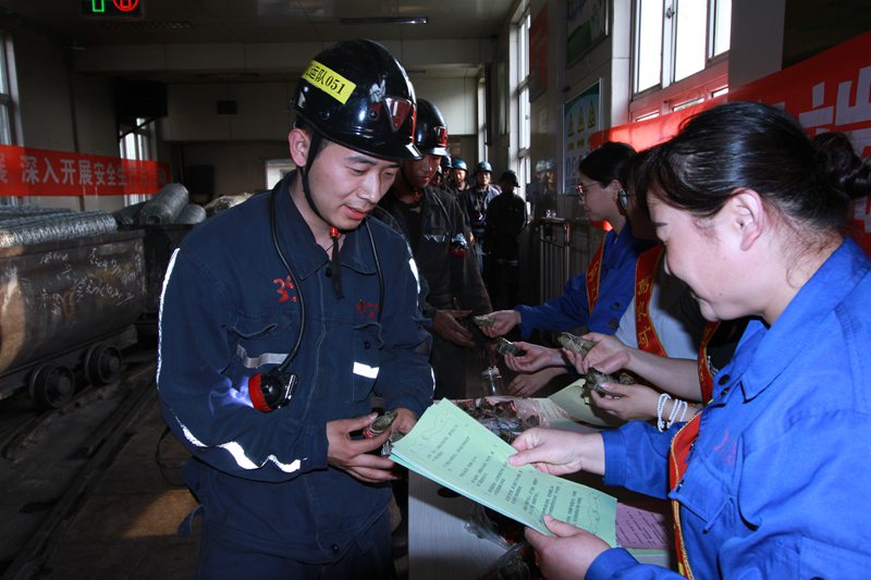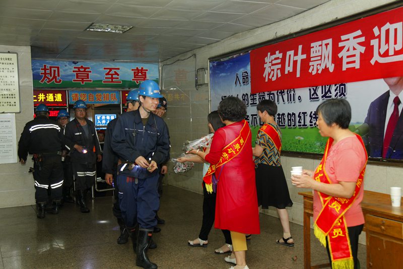 该矿组织全体女工协管员深入到井口,为下井和上井的矿工兄弟们热情地送上粽子、西瓜等慰问品,并奉上浓浓的端午祝福。此外,工会的工作人员还分成几个小组,分别各基层单位、岗位,把饱含浓浓祝福的“平安粽”“ 幸福果” “亲情寄语”等亲自送到每一个坚守在岗位上的职工手上,并嘱咐大家要注意安全、遵章作业。据了解,此次慰问活动,共送出粽子800个,亲情寄语500多份。