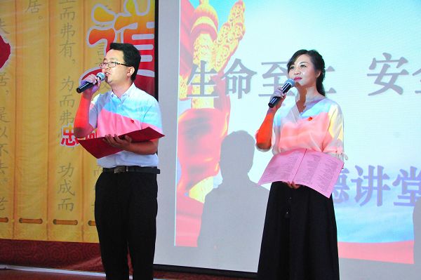活动在《公民道德歌》中拉开帷幕;紧接着在“问自己”环节中大家反躬自省,反问自己,工作中你有没有将“三违”当儿戏?你是否做到了按章操作?有没有做到“三不伤害”?试想一下如果你发生事故,你年迈的父母、幼小的孩子该怎么办?今后在自己的工作岗位上,你该如何确保自身的安全?在“讲故事”环节,廖东和兰丽共同朗诵了“安全高于一切,责任重于泰山”,呼吁广大干部职工为了个人和家庭幸福,请按章作业,杜绝违章,做到三不伤害,用百分的安全,迎接更加辉煌的明天。