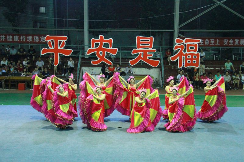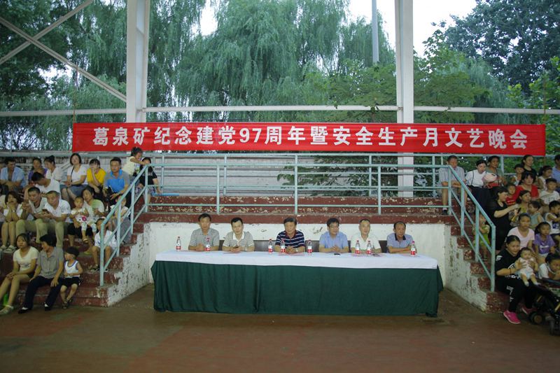6月26日,冀中能源股份公司葛泉矿工会举办纪念建党97周年暨“平安是福”安全生产月文艺晚会在工人村篮球场上演,该矿矿领导以及近千名职工家属观看演出,为建党97周年和安全生产月加油喝彩。