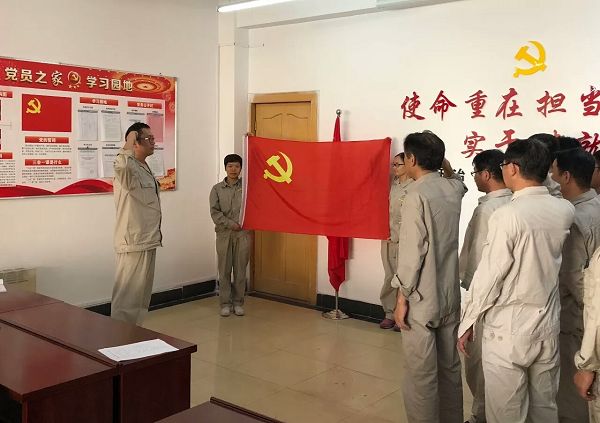 华美热电公司:检修部党支部组织全体党员进行集体宣誓,重温入党誓词,不忘入党初心。