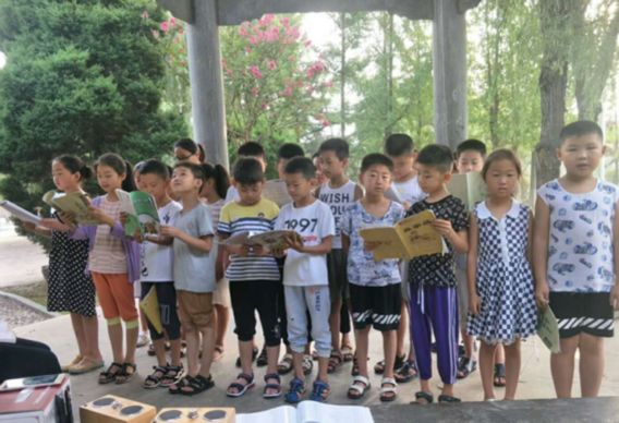 “道人善,即是善;人知之,愈思勉.....”,清晨,山东能源新矿集团翟镇煤矿文化广场传来朗朗读书声。暑假期间,为更好的传播中国传统文化,营造浓厚的“读书风”,由家住矿区的老师自行组织该矿职工子女,每天清晨在文化广场进行一个小时的国学美文诵读,这不仅为孩子们养成爱读书的好习惯,也带动全矿致力于“爱读书、读好书”的书香氛围。图为孩子们正在读书。