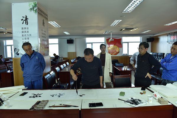 在漳电大唐、同达热电公司,集团公司工会15名书法、绘画老师与广大爱好者亲切交流,并满怀激情、挥毫泼墨,现场创作书法、绘画作品70余幅。