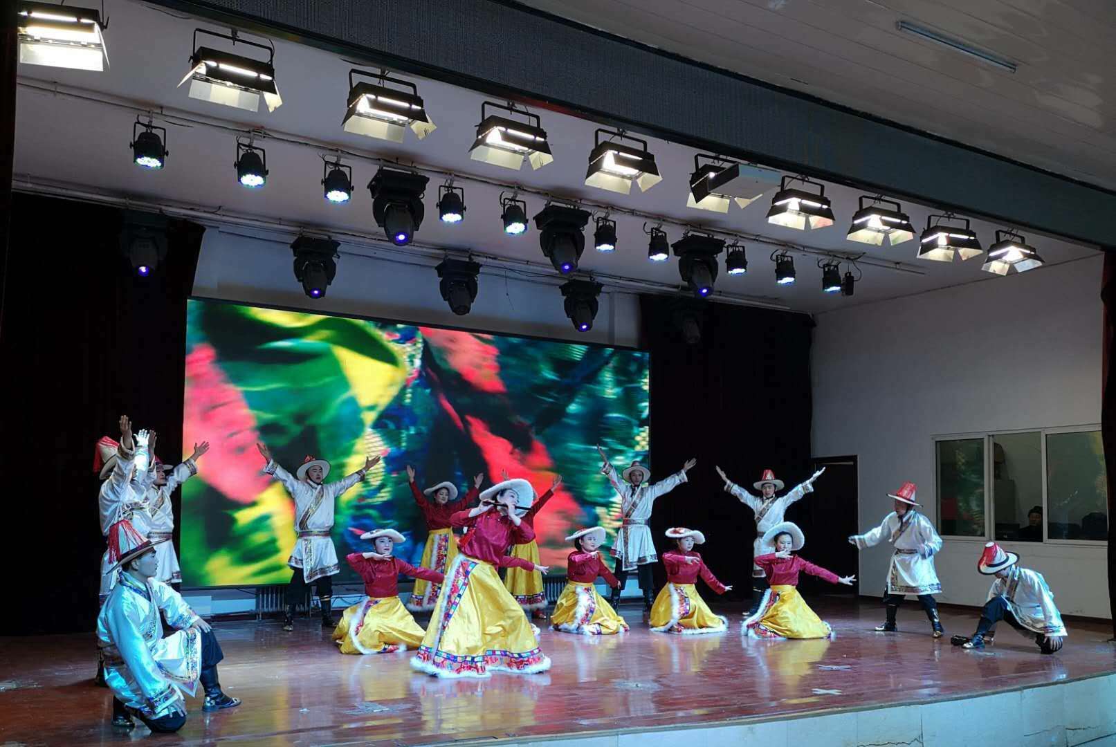 室外冰天雪地,室内春意融融。12月27日下午,位于海拔4200多米的青藏高原天峻义海公司职工食堂多功能大厅,座无虚席,到处欢歌笑语,由中共义海能源公司党委、义海能源公司、义海能源公司工会举办的庆祝改革开放40周年、义海能源公司成立15周年新春文艺晚会首场演出正在这里举行。