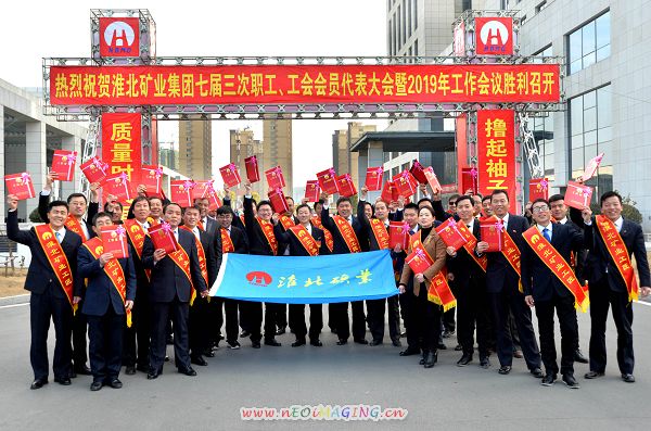 图(1)淮北矿业女职工正与“女工匠”许程程拍照合影。