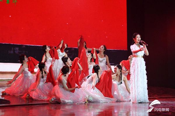 国家二级演员、山东歌舞剧院青年歌唱家李迎春的演唱精彩绝伦。值得一提的是,她白色的表演裙上投影了五彩斑斓的动画,视觉效果非常震撼。