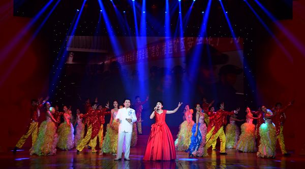 演出结束后,姚峰等公司领导走上舞台,与全体演职人员一一握手并合影留念。