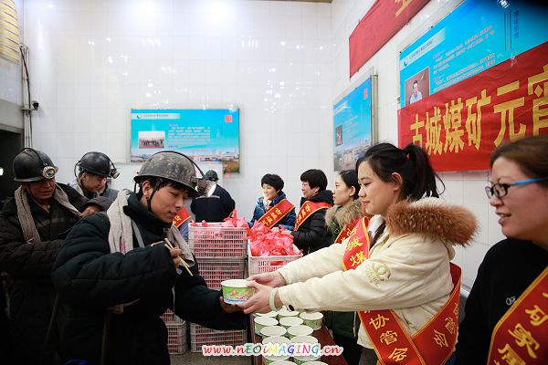 元宵节吃汤圆是中国的传统习俗,糯米做成的圆圆的汤圆,寓意着幸福团圆。古城煤矿工会组织女工家属协管员在副井口为今天上班的职工送上了香甜软糯的汤圆、苹果、牛奶等食品,希望大家一年都能“平平安安、吉祥、团圆”,使他们深刻感受到了矿山大家庭的温暖。