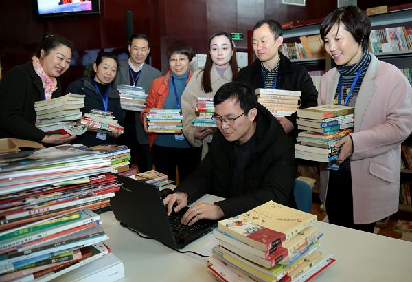为积极贯彻脱贫攻坚工作要求,履行国企社会责任,淮北矿业集团工会、文联牵头,发起“放飞爱心、‘书’送希望”爱心捐书活动,为扶贫联系点萧县胡庄村、砀山梁寨村建设农村书屋,开展文化扶贫。当日,工会累计收到捐赠各类图书约2000余册。图为淮北矿业集团机关及驻办公中心相关单位人员在踊跃捐赠图书。