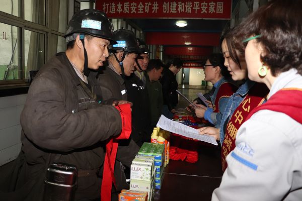 这是3月6日下午14时30分,河南能源集团鹤煤公司三矿工会组织协管员在副井口开展的“协管助安全 亲情筑防线”慰问活动的场景。