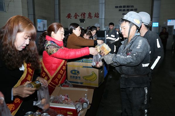 “兄弟,喝杯饮料,吃个热鸡蛋再下井。”“兄弟,井下作业时一定要注意安全,对自己负责,让家人放心。”女工家属协管员们声声叮嘱让入井矿工们无比温暖。“放心吧,为了咱们矿井的安全,为了家人的期盼,我一定严格按照标准岗位作业流程操作、安全作业”,一位矿工接过慰问品高兴地说。