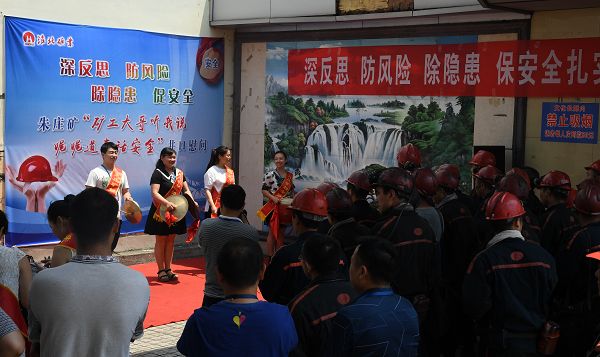 为进一步提升职工安全生产意识,确保安全生产,该矿协安员们冒着高温,放弃午休时间,带着小奖品来到井口,通过自排自演的文艺节目和安全知识有奖问答,增强职工安全生产意识。