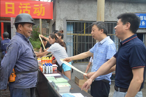 6月16日,太平矿组织安全监察科、矿工会、培训分中心、党委工作部等相关部门在该矿矿嫂服务站开展以“防风险 除隐患 遏事故”为主题的“安全生产月”咨询日活动。