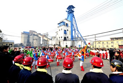 正月初一,百善矿锣鼓喧天,欢庆新春