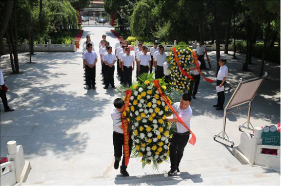 15时许,敬献花篮仪式开始,36名领导干部和管理人员怀着无限崇敬的心情步入烈士陵园,瞻仰革命先烈不朽功绩,全体人员向革命烈士敬献花篮,面向纪念碑行鞠躬礼,瞻仰纪念碑浮雕并送上鲜花,寄托对先烈的哀思。