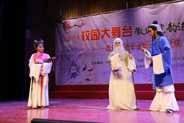 “树上的鸟儿成双对,绿水青山带笑颜……”脍炙人口、优美动听的唱腔赢得掌声一片。11月13日下午,由中共安徽省委宣传部、省教育厅、省文化和旅游厅主办,芜湖县黄梅戏剧团承办,安徽矿业职业技术学院协办的2019年“校园大舞台——徽风皖韵进高校”戏曲演出在学院电教馆隆重举行。该院领导和相关部门负责人、部分师生500余人共飨一场视听盛宴。
