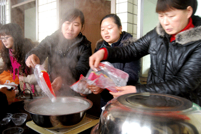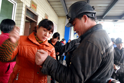 为了让早班职工吃到香喷喷的汤圆和鸡蛋,早上5点,该矿家属协管人员和青年志愿者就早早地来到了井口现场,他们烧开水、下汤圆、煮鸡蛋,不到6点半,一大锅汤圆和300余个鸡蛋就为早班的职工准备好了。第一个吃上元宵节汤圆的运输队职工梁道林激动地说道:这么重要的节日我都给搞忘了,每缝佳节倍思亲,一家不圆万家圆,祝愿我们的矿井明天会更加美好。在人车场候车区,由4名家属协管员演讲的安全生产三句半为职工搞好安全生产再次敲响警钟,3名手拿针线的家属协管员为矿工仔细缝补衣物和扣子,还有部分矿工家属忙前忙后为上班职工端上香甜可口的汤圆和鸡蛋,整个井口蕴藏着深厚的节日氛围。