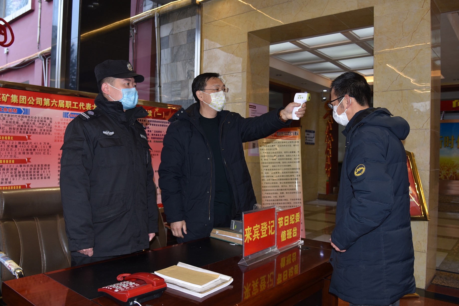 为切实做好新型冠状病毒疫情防控工作,同煤集团燕子山矿积极行动,统筹部署,抽调各级党组织、团组织和社区卫生服务中心、保卫科人员成立了医疗防控、党员、青年志愿服务、安保四支疫情防控工作队伍,分别坚守在出入矿区、工业区、公寓、浴室、食堂、各居民社区门岗及候罐大厅、班车候车大厅等人员密集地设置的10个疫情防控工作站和15个监测点,对出入矿员工家属、上岗员工、外来人员进行检查登记、体温测量、宣传引导,在做好疫情防输入、防输出、防扩散工作的同时,引导广大员工群众从自我做起严格落实上级关于新型冠状病毒疫情防控工作的部署要求,大力营造疫情防控工作联防联控、群防群控良好氛围,坚决打好打赢新型冠状病毒疫情防控阻击战。