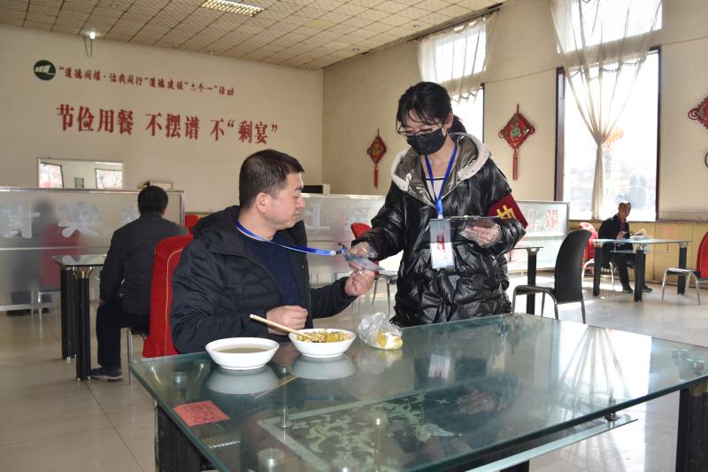 随后,杨华又对场所消毒、餐具消杀、环境卫生、饭菜留样等工作进行仔细排查,一圈下来已是5点半,他便和矿防疫执勤人员一起对陆续前来就餐的员工进行测温、督导。