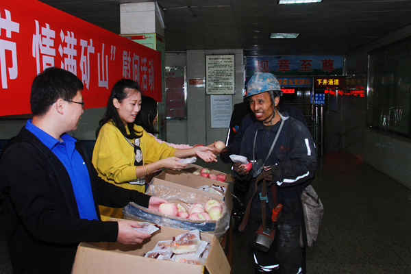 活动中,该矿工会全体人员深入到井口、区队等工作地点,为节日期间坚守在工作岗位的广大职工送上800余份月饼和苹果等慰问品,向职工送去亲切的慰问,并叮嘱大家在岗位上要时刻牢记安全,按章作业,确保安全生产。