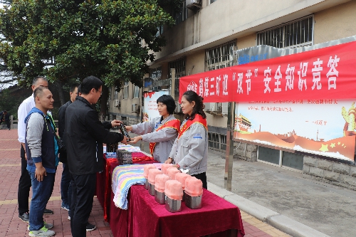 10月1日上午,该矿工会本着“节俭、文明、和谐、热烈、全员参与”的原则,精心调制了“国庆节”的文化大餐,备足了丰厚的精神活动,不仅在矿内扯横幅,而且挂灯笼,他们精心安排了一系列丰富多彩的文体娱乐健身活动。活动项目有安全有奖问答、晃晃球、瞎子敲鼓、抢椅子、套圈等近10项文体活动。该矿领导也积极主动参加到活动当中与员工同欢共乐,使广大员工在寓教于乐中欢度“双节”。据统计,当天该矿先后有500余人参加到“双节”的活动当中,发放奖品600余份。