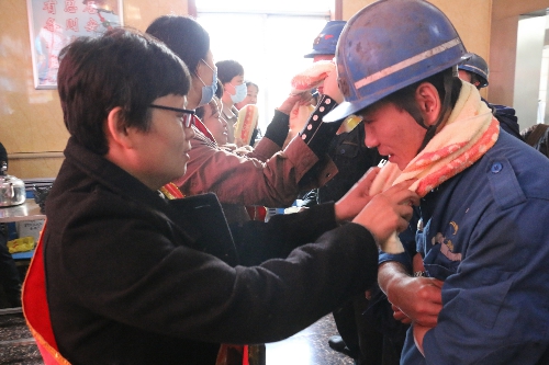 活动中,肥矿集团白庄煤矿女工协管员代表宣读了“凝心聚力抓安全、增强信心促发展”倡议书,激励广大职工立足本职岗位,焕发劳动热情,以一流的工作、一流的业绩、担当作为,务实创新,积极投身到四季度安全生产中,夺取全年各项工作的全面胜利。活动现场,女工协管员为职工发放了活动倡议宣传单,将安全毛巾系在即将下井的一线矿工脖子上,并深情的叮嘱矿工们要时刻把安全放在首位,吃安全饭、端安全碗,挣安全钱,做到不安全不生产,表达了所有女工对安全生产的美好祝愿和期盼,整个活动现场洋溢着浓浓的亲情氛围,矿工们纷纷表示,一定上标准岗、干放心活,实现安全生产,用实际行动回报企业的关爱和牵挂。