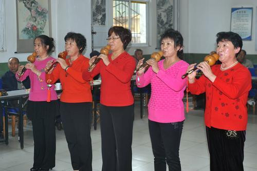 10月13日是重阳节,也是我国第一个老年节,当日,山西焦煤西山煤电集团杜儿坪矿为70岁退休职工发放礼品和节日蛋糕,演出文艺节目,祝老年人健康长寿、生活幸福。图为退休女职工演出葫芦丝合奏《祝你幸福》。