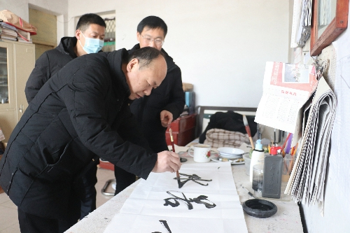 2021年1月12日,在河南能源化工集团鹤煤三矿工会会议室,几名书画爱好者正在进行以安全生产为主题的书画创作活动。书画协会会员为安全生产挥墨助力,5位书画爱好者挥毫泼墨,给该矿职工们送去安全的祝福。