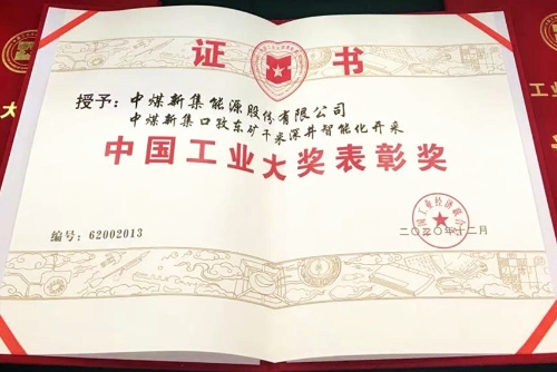 日前发布的第六届中国工业大奖,中煤新集公司口孜东矿千米深井智能化开采项目,荣膺“中国工业大奖表彰奖”殊荣,是中煤集团2020年首个获此奖项的单位。