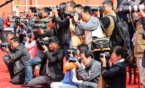 摄影家与企业摄影爱好者抢拍集体婚礼