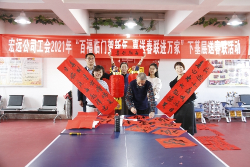 近日,宏远公司工会组织开展“百福临门贺新年,喜送春联进万家”下基层送春联活动,为广大员工送上新春的祝福。