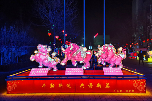 尤其是以牛年为题材的各种造型优美的花灯也成为了此次灯展的主流,充分展现了彬长矿业一年来所取得的可喜成就和职工昂扬向上、奋发进取的精神风貌。一盏盏寓意吉祥、造型各异、特色鲜明的主题灯具,通过光、电等多种动态手段,把整个广场装饰的美轮美奂,引来许多职工及家属前来观赏。