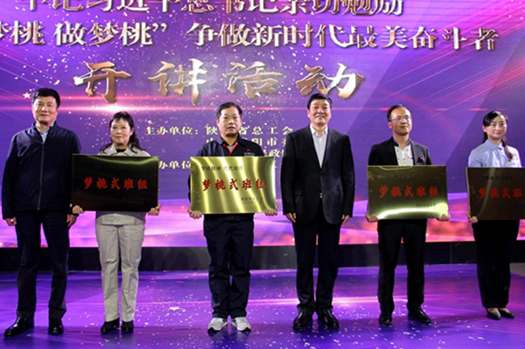 近日,陕西省总工会举办“牢记习近平总书记亲切勉励‘学梦桃做梦桃’争做时代最美奋斗者开讲”活动,现场表彰了6 个“梦桃式班组”并颁发奖牌。陕煤集团彬长矿业生产服务中心采掘机械修理车间减速机维修班受到会议表彰,被授予“梦桃式班组”。
