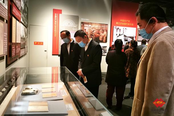 全体党员循着具有标志意义的数字立柱前行,以中国共产党的诞生、土地革命、抗日战争、新中国成立四个历史时期为时间轴,依次参观了“东方破晓”“星火燎原”“中流砥柱”“夺取胜利”四个主题单元,从珍贵的图片和文物、翔实的文字和资料中,了解掌握了中国共产党从建党到建立新中国的伟大征程,深刻理解了中国共产党不断探索马克思主义中国化的历史进程。