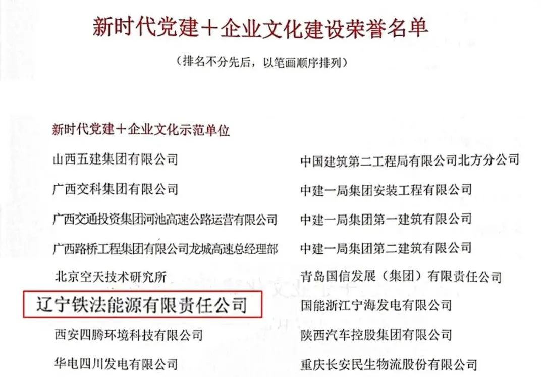 其中,辽宁铁法能源公司荣获“新时代党建+企业文化示范单位”荣誉称号,铁法能源公司申报的庆祝建党百年MV作品---《星光》荣获“第八届最美企业之声”银奖代言作品,并在光明网“最美企业之声”专栏进行展示展播。