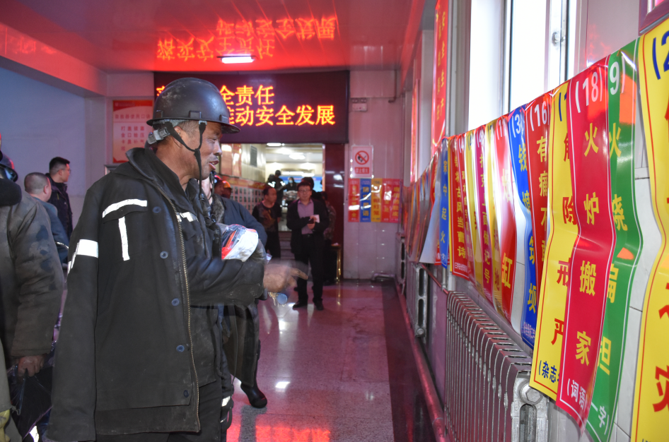 下午三时许,刚刚出井的一线员工们围在安全谜条前面,或独自一人低头思索,或三两成群激烈讨论。猜出谜底的员工兴冲冲的揭下谜面,三步并作两步跑到现场工作人员身边大声的说出自己答案。“38号是‘绝缘手套’对不对?”“75号是‘安全’的‘安’字。”“正确,都答对了,这是一份小礼品,是对你们猜对正确答案的奖励。不过光答对还不行,还要牢记在心里、落实在行动中啊。”现场工作人员笑着叮嘱大家……