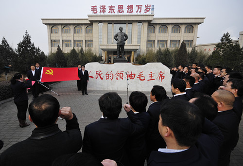 2013年12月26日,是毛泽东同志诞辰120周年的日子。山西潞安集团漳村煤矿领导和矿属各支部的党员,来到潞宝集团毛主席纪念馆前,深切缅怀毛泽东同志的丰功伟绩,学习弘扬毛泽东等老一辈无产阶级革命家为党、为国家、为民族、为人民矢志奋斗的革命精神和崇高品格,为推进数字矿山、绿色崛起、实现中国梦提供强大的精神动力和思想保障。该矿全体党员面对党旗庄严宣誓,矿领导亲手为新党员佩戴党徽,对党员们提出殷切希望。