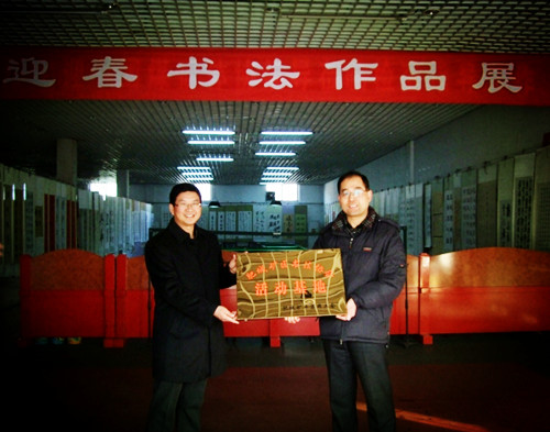 工会副主席马成授予鲁中公司永安俱乐部为肥城矿区书法协会活动基地