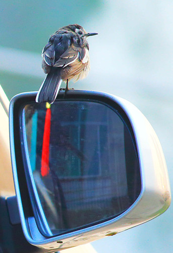 爱照反光镜的鸟儿