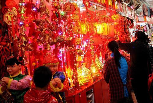 1月12日,安徽皖北煤电刘桥矿区的人们在选购节庆物品。市场内琳琅满目的物品,川流不息的购物人群让矿区的年味渐浓。