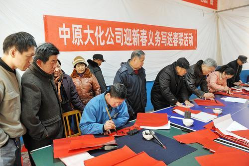 河南能源化工集团中原大化公司组织进社区义务写送春联活动 来源:河南能源化工集团中原大化公司 作者:吕标伦 时间:2014-01-26 【字体:小 大】 1月24日,河南能源化工集团中原大化公司在员工生活区举办了迎新春义务写送春联活动。为让员工过一个喜庆祥和的新春佳节,该公司组织6名书法美术协会骨干走进社区为员工及家属义务写送春联,受到员工的欢迎与好评。 智能标签: 河南能源化工集团 中原大化公司 相关内容 分享到: 【打印正文】