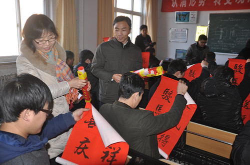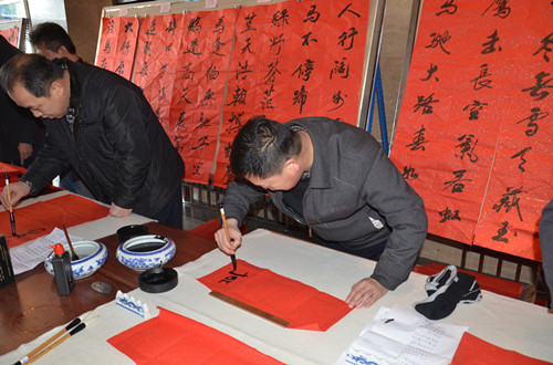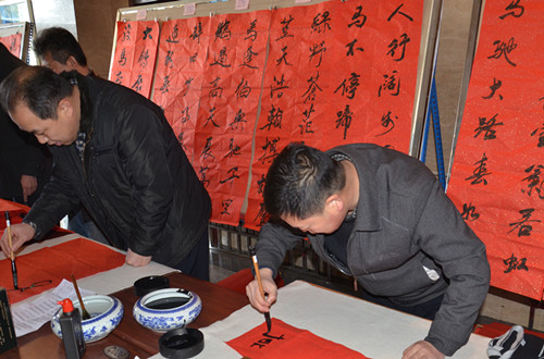 文联为丰富矿区文化建设,特别重视,提早筹备,聘请书协精英骨干,利用业余时间写春联,书写内容紧扣喜迎新春和党的十八届三中全会主题,思想鲜明,内容积极、健康向上,精心创作了3500多副对联。六大矿领导和工会也非常重视此次活动,前期也做了充分的筹备工作,组织人员,书写了5000余副对联,全力配合,鼎力支持此次活动,现场组织各具特色。通过一周的时间,文联组织的20名曾在全国以及省内外多次获奖的矿山书法家在井口、班中餐食堂、交接班楼、澡堂门口现场书写楹联5000余幅。每到一处,请矿山书法家写春联的人络绎不绝,赢得了一线职工和家属连连称赞。不仅让人们感受到了年节的欢乐,同时也让基层职工家属在寒冷的冬天感受到企业大家庭的温暖。