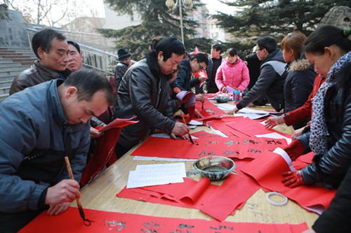 马年纳福送福对,吉祥如意进万家。在新春佳节即将来临之际,陕煤化铜川矿业公司下石节煤矿工会从腊月二十七到大年二十九在矿文化宫开展矿书协新春送春联活动,邀请土生土长的矿山书法家义务为矿区的职工群众写春联。