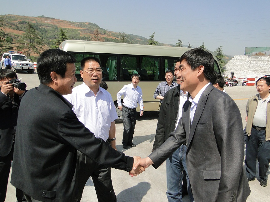图为公司董事长窦孟刚迎接省国资委领导参观调研