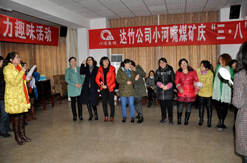 在第104个三八节即将来临之际,2月28日,川煤集团达竹公司小河嘴煤矿工会女工委组织全矿女工、矿区协管员,开展了一场别具风格的智力趣味活动,迎接自己的节日。
