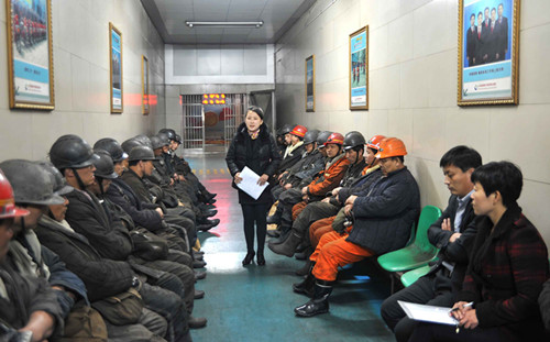 新矿集团鄂庄煤矿演讲人员在井口为一线职工演讲
